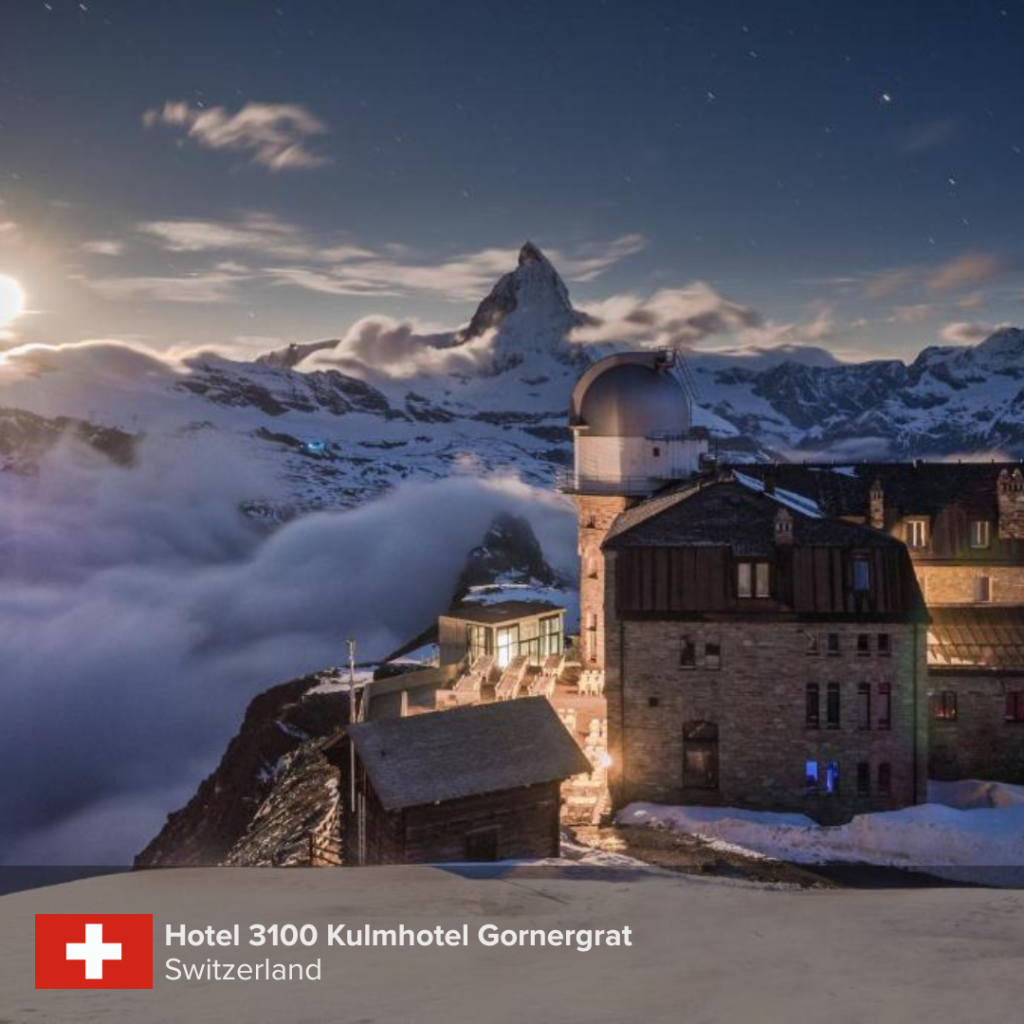 ตั้งอยู่สูงที่สุดในยุโรปที่ระดับความสูง 3,100 เมตร โรงแรม Kulmhotel Gornergrat เป็นจุดหมายที่สมบูรณ์แบบสำหรับผู้ที่รักธรรมชาติและวิวทิวทัศน์อลังการ จากที่นี่ คุณจะได้ชมยอดเขาแมทเทอร์ฮอร์น (Matterhorn) อันโด่งดัง รวมถึงเทือกเขาแอลป์โดยรอบอย่างเต็มตา บรรยากาศที่เงียบสงบและบริสุทธิ์ทำให้ Kulmhotel Gornergrat เป็นที่พักที่เปี่ยมไปด้วยความพิเศษและความสงบ